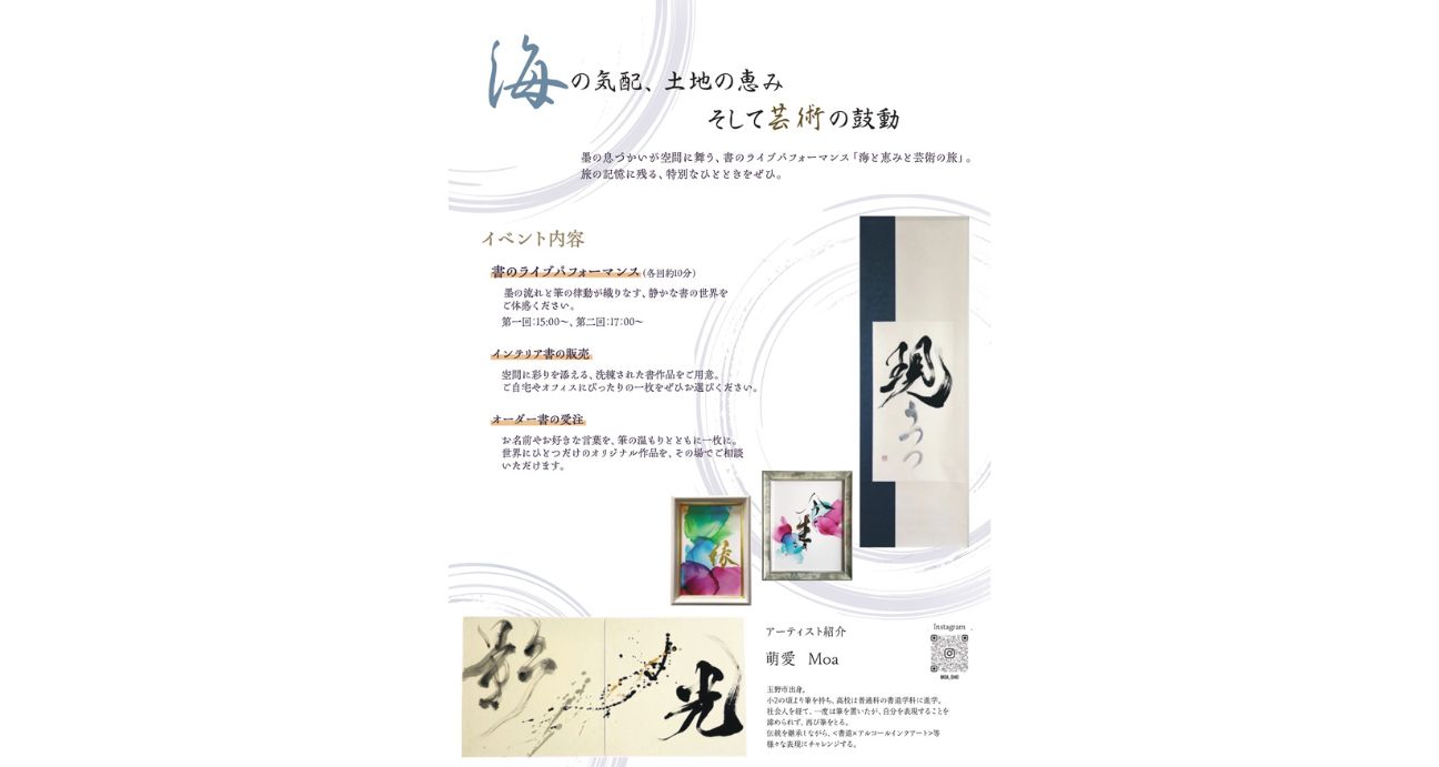 地元出身の書道家・萌愛(もあ)氏によるライブパフォーマンスイベント「海の恵みと芸術の旅」
