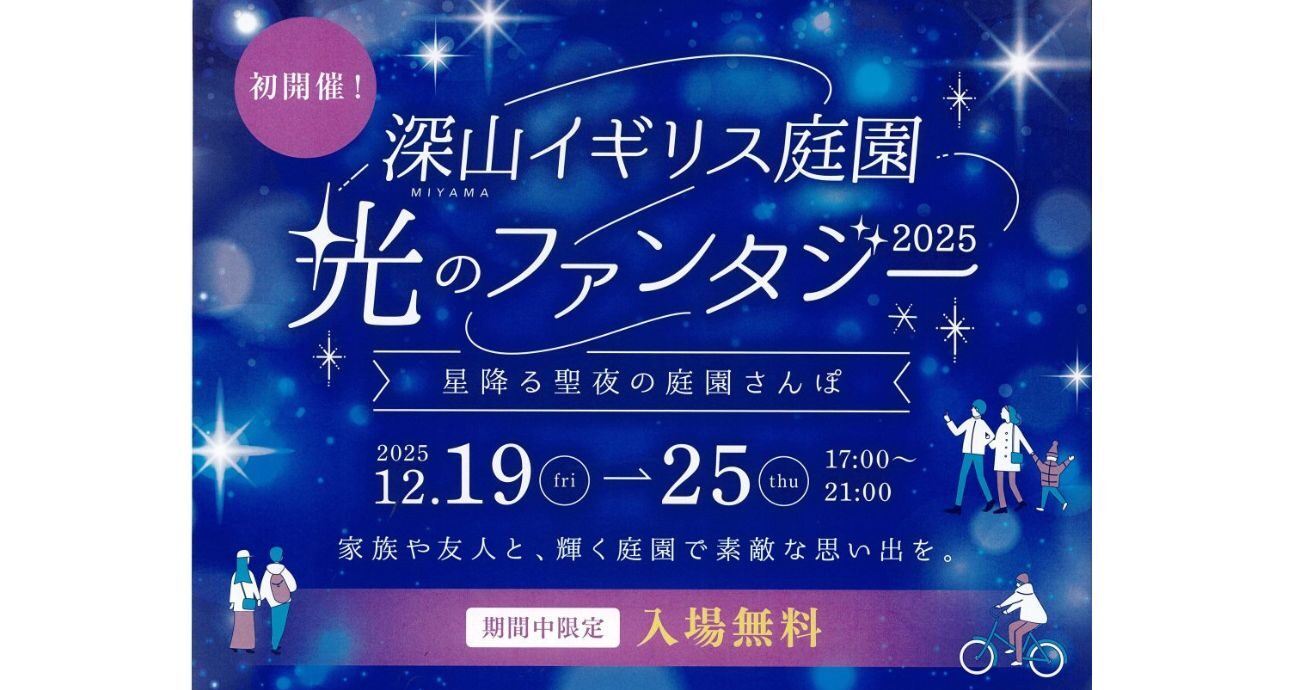 深山イギリス庭園にて、初めてのイルミネーションイベントが開催されます。