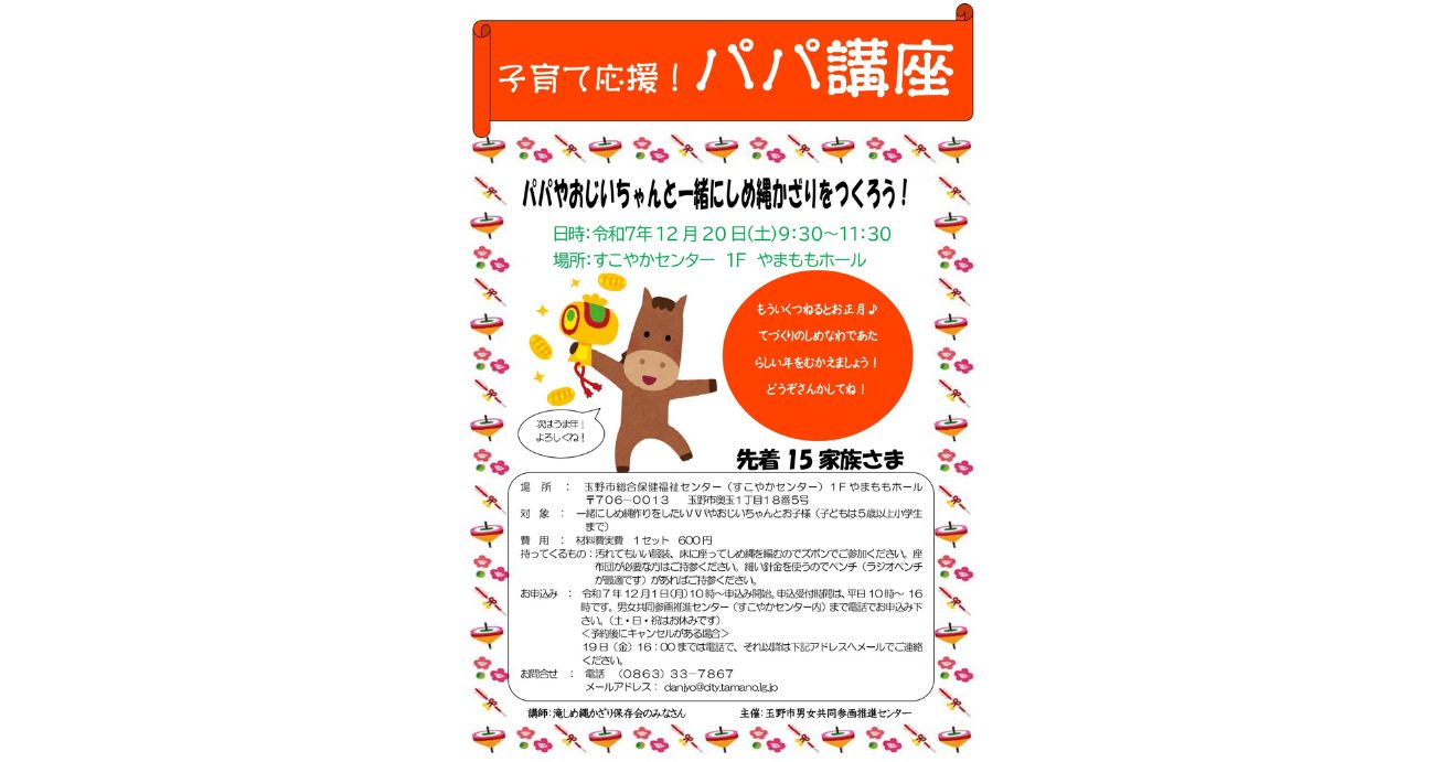 子育て応援!パパ講座 パパやおじいちゃんと一緒にしめ縄飾りをつくろう!