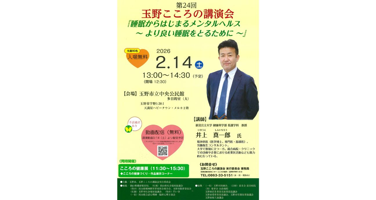 玉野こころの講演会『睡眠からはじまるメンタルヘルス~より良い睡眠をとるために~』