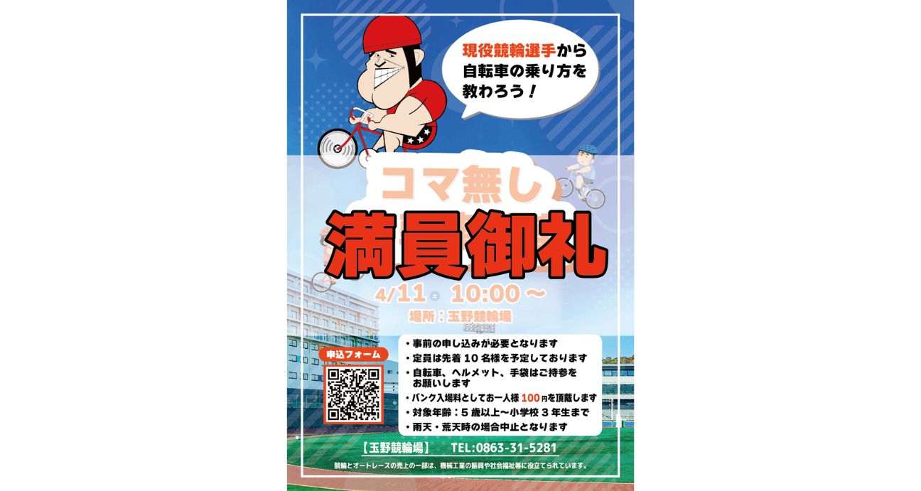 【4月3日追記:「コマ無し自転車教室」は定員数に達したため、募集を終了いたしました】