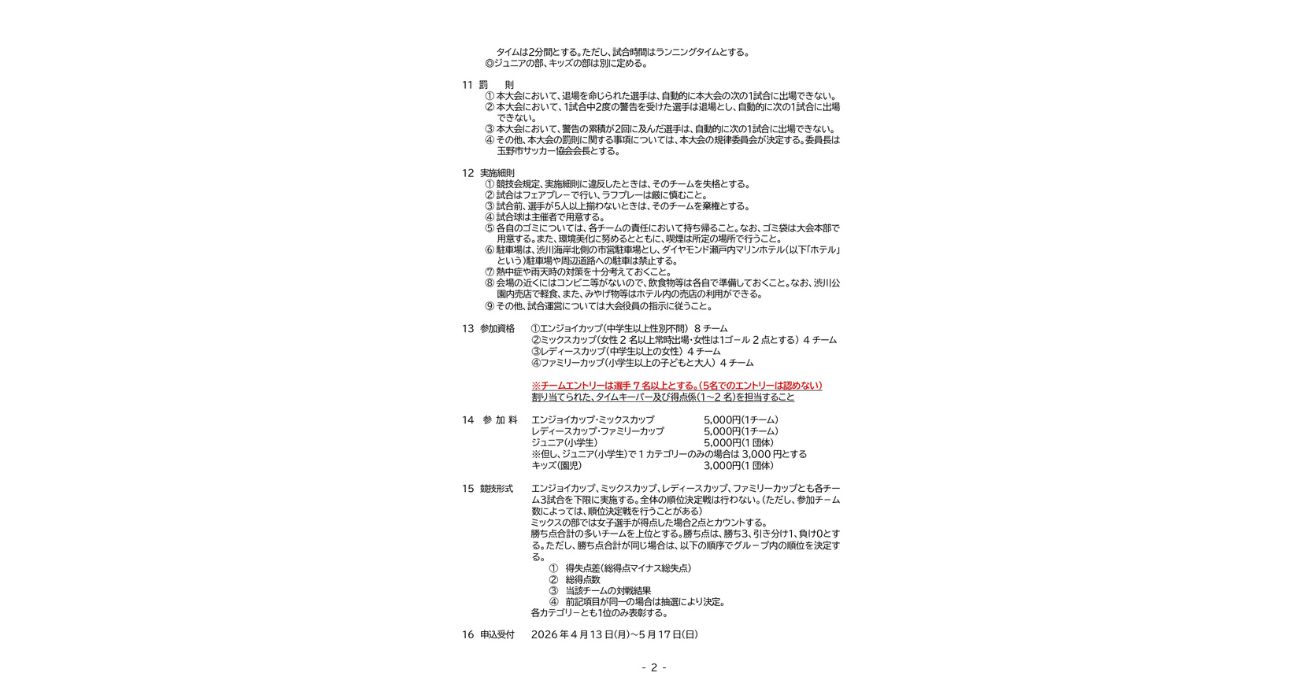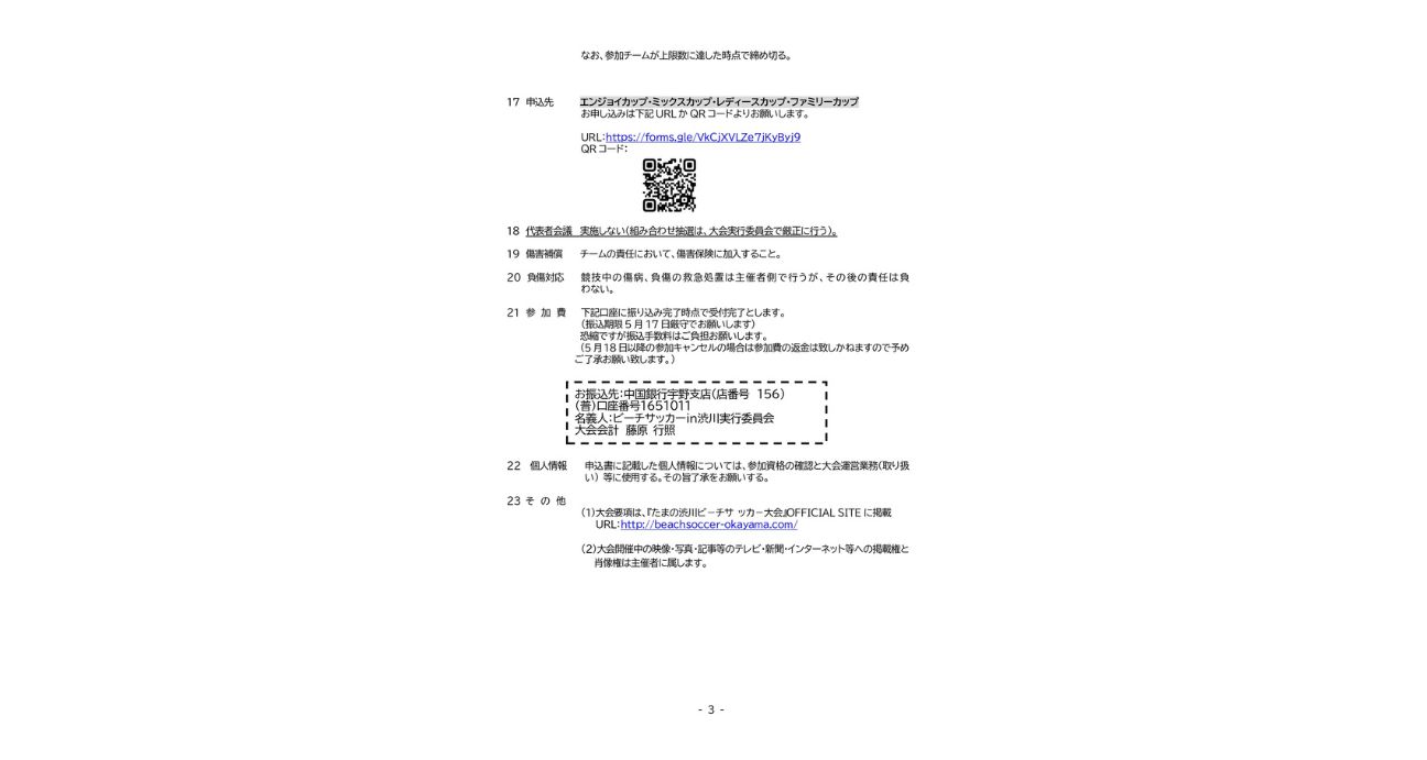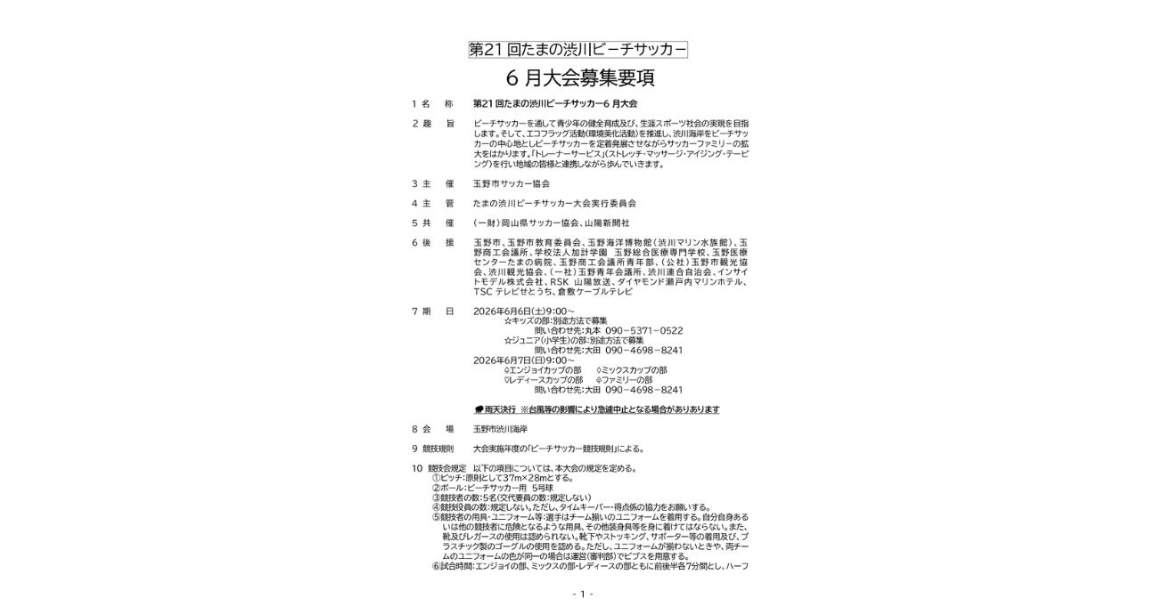 - たまの渋川ビーチサッカー大会実行委員会 TEL. 090-4698-8241