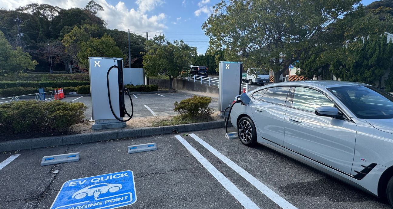 玉野市田井に本社を置く株式会社パワーエックスさんが開設したEVチャージステーションでは、最大150kWの国内最速クラスの出力による短時間充電が可能となります。