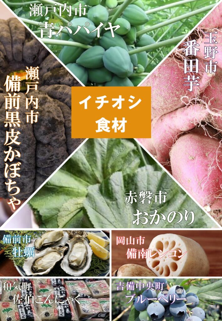 ◆使用食材 番田芋、備南レンコン、牡蠣、備前黒皮かぼちゃ、青パパイヤ、おかのり、佐伯こんにゃく、ブルーベリー