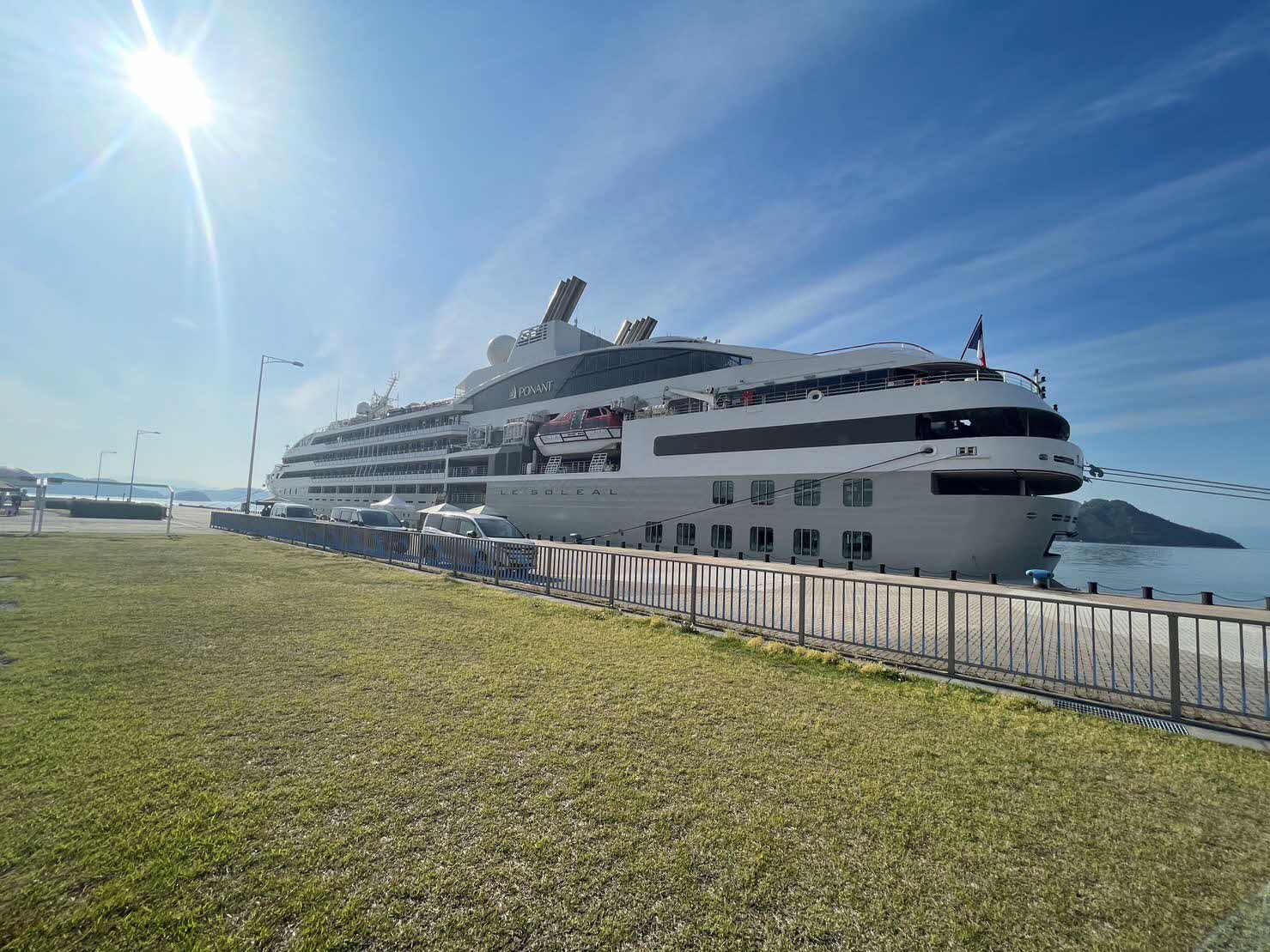 3月~4月に宇野港へ入港するクルーズ船のお知らせです。豪華客船を間近で見られるこの機会にぜひ宇野港へお立ち寄りください。